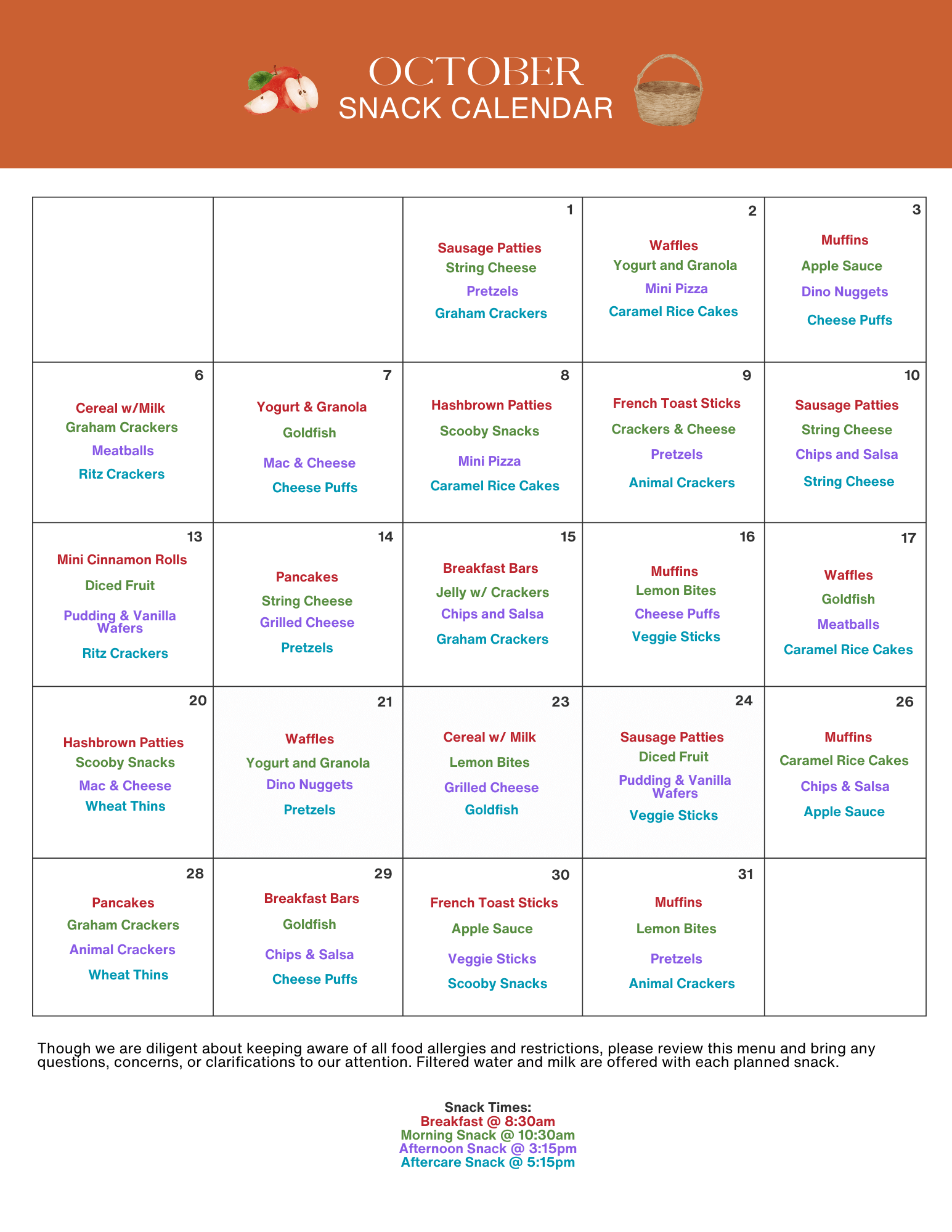 October 2025 Newsletter | October 2o25 Snack Calendar