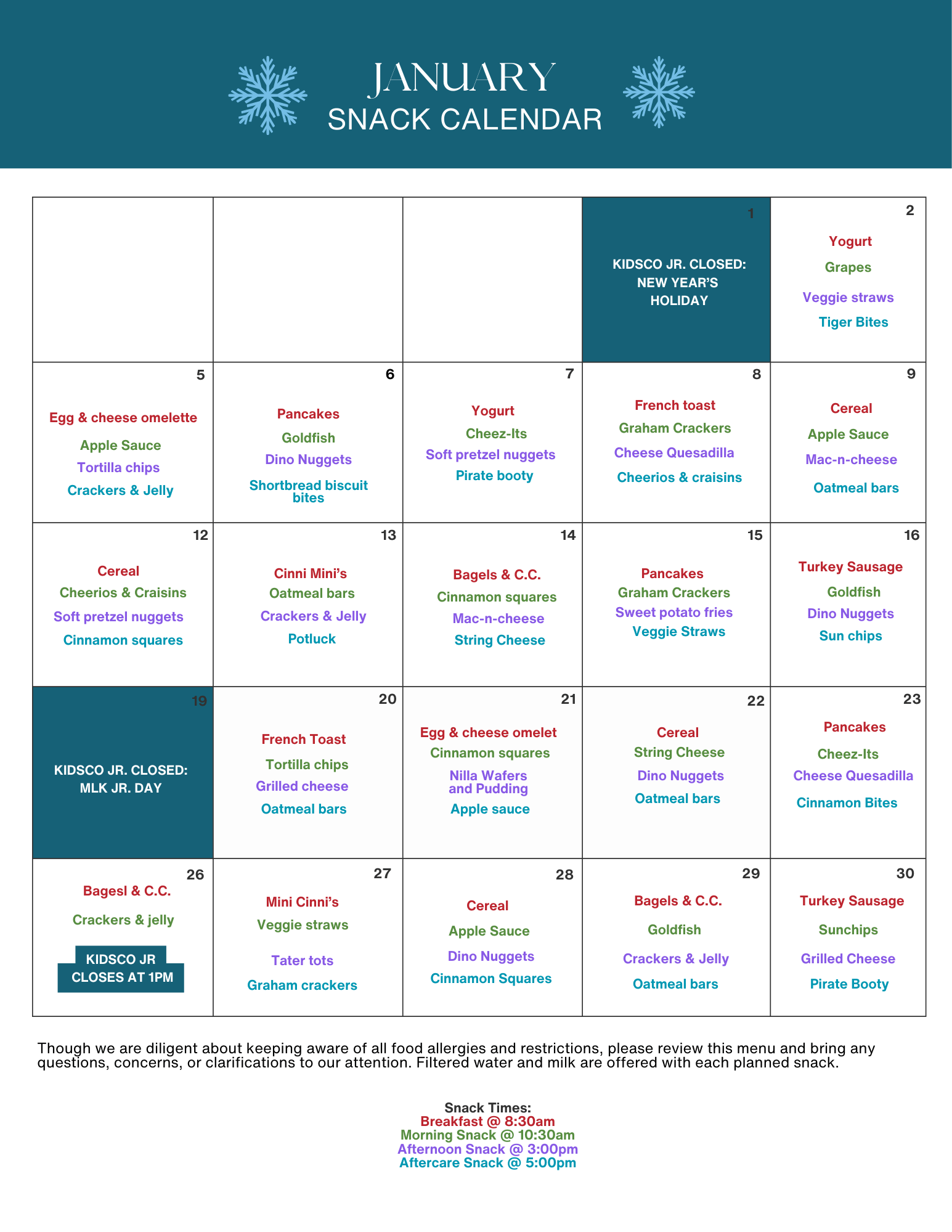 September 2025 Newsletter | September 2o25 Snack Calendar